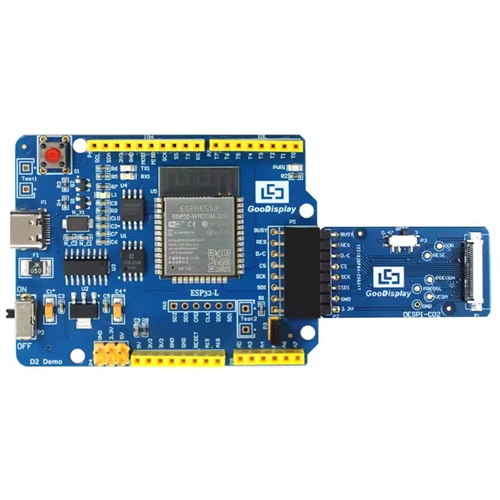 Razvojni komplet ESP32‑L z DESPI‑C02 za krmiljenje SPI E‑paper zaslonov, z Wi‑Fi in Bluetooth, podprt z Arduino okoljem.