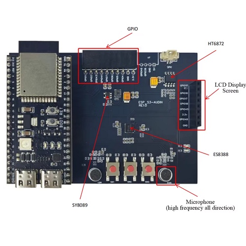 Plošča je prilagojena za 44-pinske ESP32-S3 krmilnike (npr. različice N16R8 z veliko PSRAM pomnilnika), ki so dovolj zmogljivi za poganjanje knjižnic za prepoznavanje govora. Poleg avdio funkcij ponuja še priključek za LCD zaslon, tri uporabniška stikala in dostop do prostih GPIO pinov za dodatne senzorje.