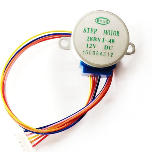Koračni motor 28BYJ-48 12 V, 4-fazni unipolarni z reduktorjem ≈ 1/64, natančen korak ≈ 0.088° in preprosta uporaba z ULN2003 za Arduino/ESP projekte.