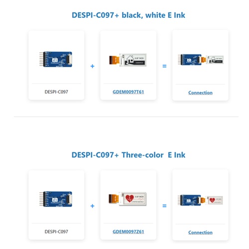 Modul za povezavo E‑Ink HAT z e‑papirnim zaslonom DESPI‑C097