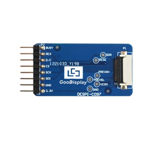 DESPI‑C097 je kompaktna vmesniška ploščica za povezavo 0.97‑palčnih (18‑pin) e‑papirnih zaslonov z razvojno ploščo preko SPI. Na majhnem tisku združuje periferijo za dvig napetosti in praktične testne točke za diagnostiko napajanja. Namenjena je hobistom, študentom in inženirjem, ki želijo hitro preizkusiti E‑Ink prikaz in ga vključiti v svoje prototipe brez načrtovanja lastnega visokonapetostnega dela krmilja.