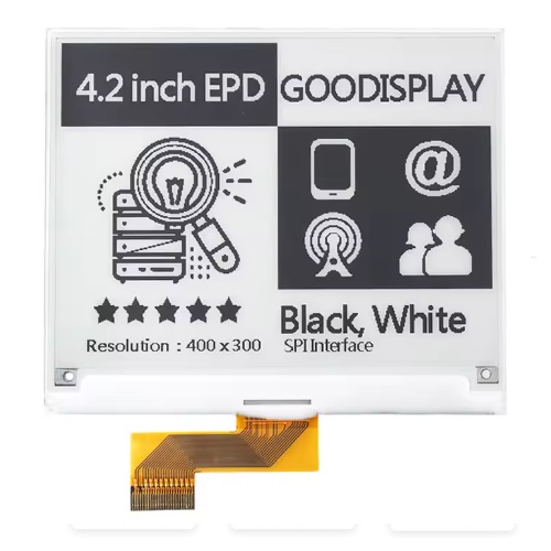 4.2″ črno‑beli e‑papir GDEY042T81 (400×300), SPI, 3.3 V za nizkoenergijske prikaze in IoT etikete.