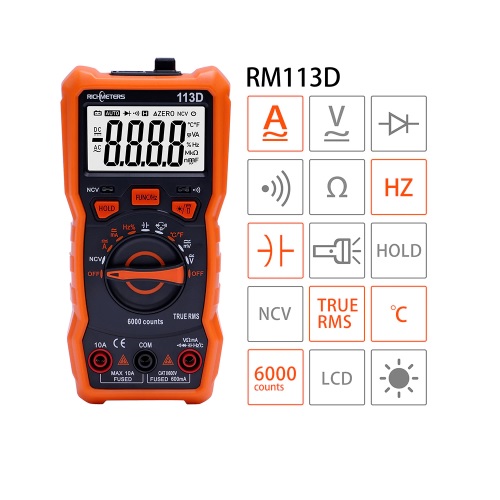 Multimeter digitalni RM113D je elektronska naprava, zasnovana za merjenje različnih električnih veličin, kot so napetost, tok, upornost. Podobno kot drugi digitalni multimetri, je RM113D namenjen tako profesionalnim uporabnikom kot domačim mojstrom za diagnosticiranje električnih težav in preverjanje delovanja elektronskih komponent.