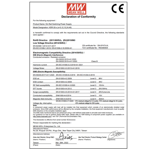 - EMC emisije: EN55032 (CISPR32) razred B, harmoniki EN61000-3-2, utripanje EN61000-3-3