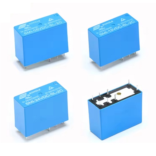 Songle SMI-24VDC-SL-2C – miniaturni 24V DPDT rele, 8 pinov, 5A/250VAC. Dva neodvisna kontakta za industrijske 24V sisteme in PCB montažo.